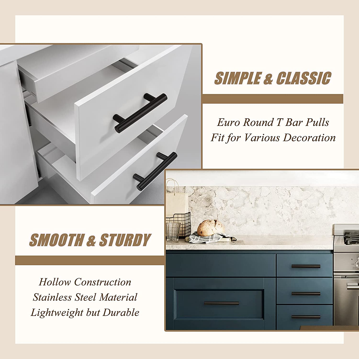 Onze zwarte keukenkast bar handgrepen zijn gemaakt van hoogwaardige materialen, duurzaam en roestvrij, en combineren schoonheid en functionaliteit in één. De eenvoudige stijl maakt ze gemakkelijk te installeren en geschikt voor verschillende soorten kasten, ongeacht de stijl van je huis of de grootte van je kasten. Deze handgrepen bieden een perfecte oplossing voor je huis en kasten.