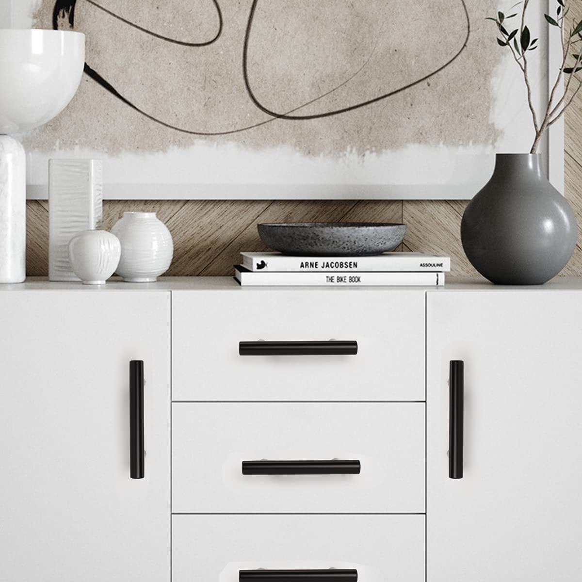 Zwarte handgrepen voor keukenkasten